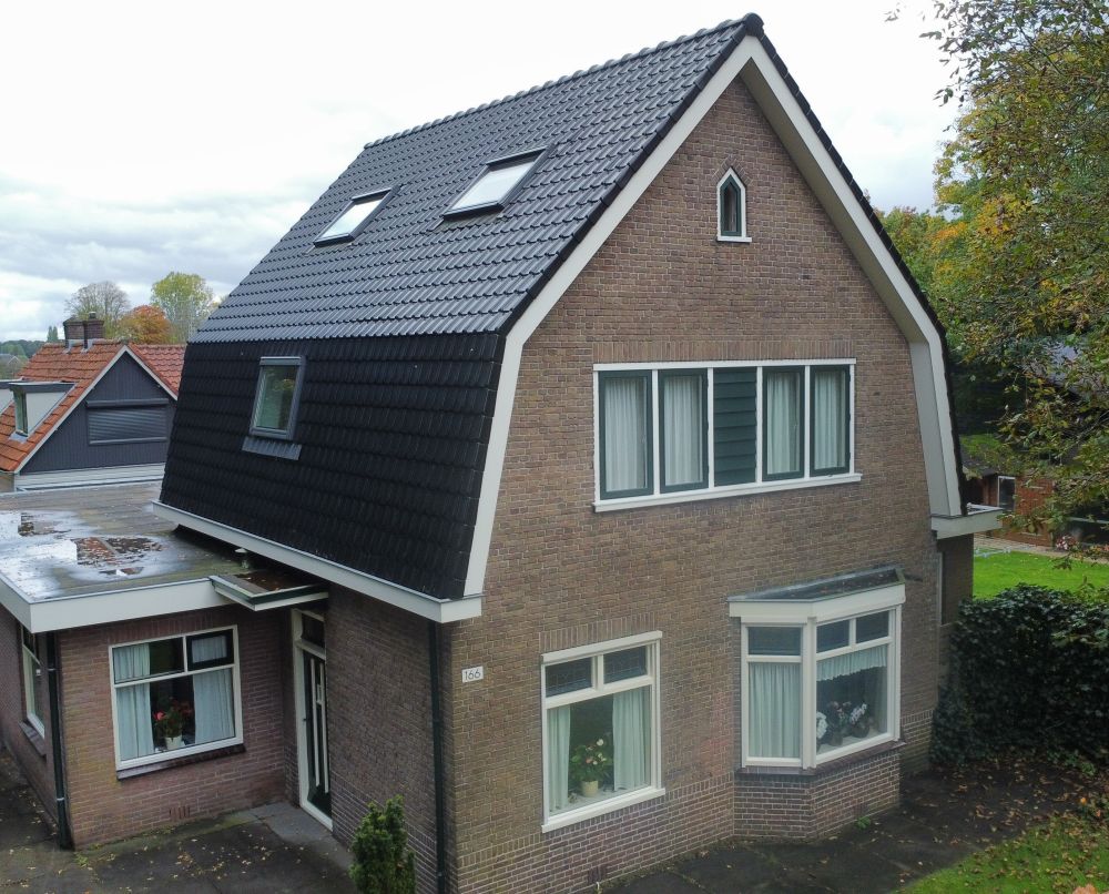 Deze jaren 30 woning was hard aan onderhoud toe. Het dak is uitgevuld (zakte ca 10cm door) zodat het weer een strak geheel is. Daarnaast zijn er nieuwe pannen op gekomen en ook is de kap geïsoleerd. De overstekken zijn ook geheel vernieuwd en nu gemaakt van rockpanel waardoor schilderwerk tot het verleden behoort.